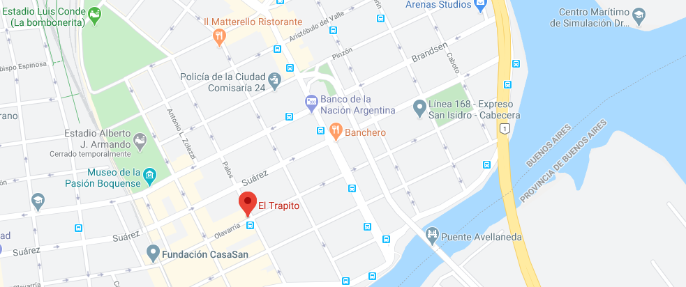 La Asociación El Trapito esta ubicada en el barrio de La Boca, en el sur de la Ciudad de Buenos Aires, exactamente en la calle Olavarría 601 esquina Palos.